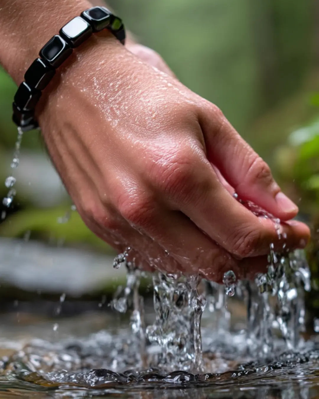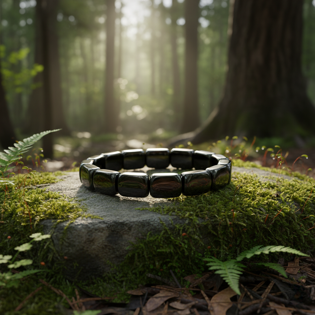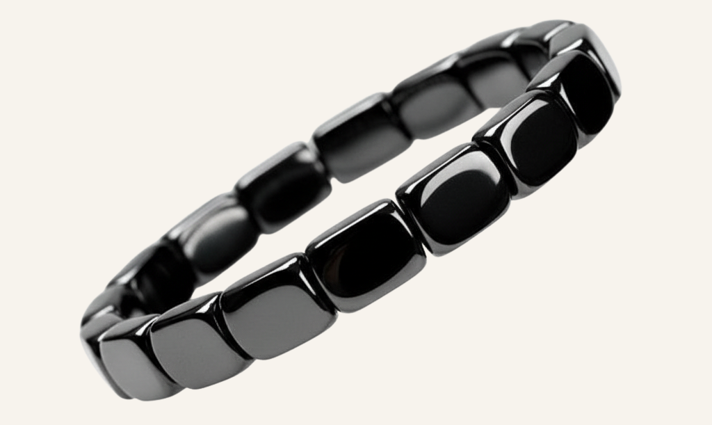 Disconnect from noise and stress. Embrace a natural and elegant way to restore balance to your mind and body. The Omyra bracelet is crafted from genuine polished hematite, known for its grounding and stabilising energy. Its smooth, sculpted design creates a refined feel that rests comfortably on your wrist. A timeless piece that helps you pause, breathe, and feel centred every day.