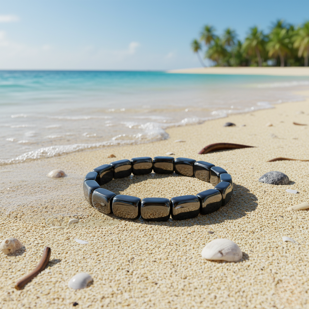 Experience calm and confidence with Omyra. A refined hematite bracelet that embodies grounding energy and mindful elegance.